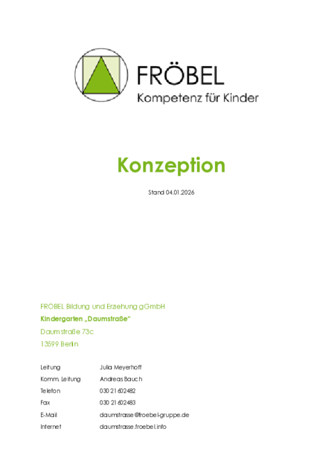 Die Fröbel-Rahmenkonzeption beschreibt die Grundlagen unserer pädagogischen Ziele und Kompetenzen. Sie bildet den Rahmen für die individuellen Hauskonzeptionen unserer Einrichtungen.
